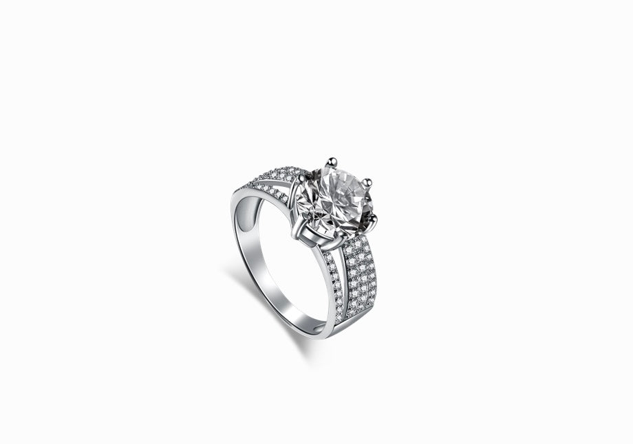 Sterling silver ring with intricate band design and 9mm risen main stone